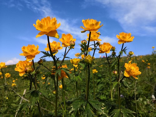 多年生草本,高30~70厘米。全株无毛。茎直立,不分枝,疏生2~4叶。基生叶1~4,长16~36厘米,有长柄,柄长12~30厘米,基部具狭鞘;叶片五角形,长3.8~6.8厘米,宽6.8~12.5厘米,3全裂,中央全裂片菱形,先端急尖,3裂达中部或稍超过中部,边缘具不等大的三角形锐锯齿