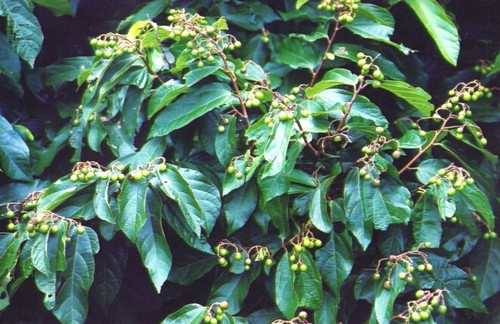 常绿灌木,高1~3米。树皮灰黑色,枝条细长,左右曲折,具纵纹,带红色或红绿色,无毛。单叶互生;叶柄短,粗壮;叶片革质,卵状长圆形,长卵形,有香气,长7~9厘米,宽2.5~3.5厘米,尾状渐尖,基部钝圆或心形