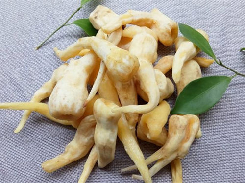 郁金:植株高0.8~1.6米,根茎切面浅黄色.外皮浅白色。肥厚,卵圆形。根端具纺锤形块根。叶柄长约30厘米,叶片绿色,长圆形或卵状长圆形,长35~75厘米,宽14~22厘米,两面无毛,基部近圆形或宽楔形,先端渐尖戒短尾状。穗状花序于根茎处先叶抽出,长20~30厘米,冠部苞片淡红色.长圆彤,长5~8厘米,先端急尖,中下部苞片绿色,卵形,长3~5厘米,花萼白色,长1~1.2厘米
