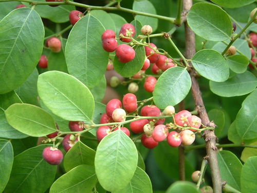 常绿灌木,高2~4米。直立或攀援状,根皮橙黄色,枝灰褐色,光滑,皮孔散生,具直立或略弯的棘刺,粗壮。单叶互生,叶片革质,倒卵状椭圆形、椭圆形或长椭圆形,先端钝或渐尖,或有微凹缺,基部楔形,全缘