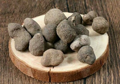 通常为不规则的坚硬块状至球形或近卵形,直径0.8~2.5厘米,稀达4厘米;表面黑棕色,具细密纹理或细皱纹,内面为紧密交织的菌丝体。质地坚硬,断面蜡白色,半透明,具白色纹理,略带粘性。越冬后,由菌核发生子实体,子实体寿命很短,一般不易见到。