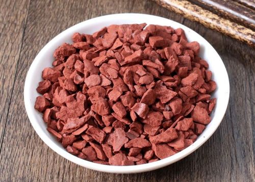 通常为鲕状、豆状、肾状的集合体,多呈现不规则的扁平块状,其颜色主要为暗棕红色或灰黑色,条痕则显示为樱红色或红棕色,部分赭石还具有金属光泽。