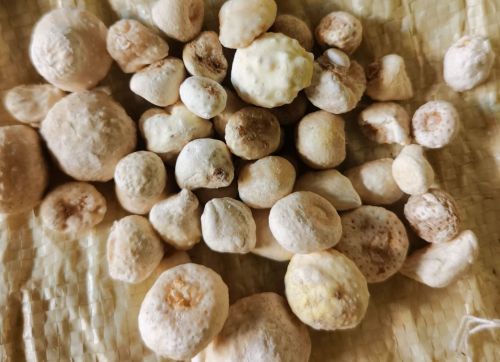 由磷灰石、方解石及少量黏土矿物组成。磷灰石为六方晶系隐晶质,依古代生物骨骼产出。疏松集合体中或有呈现晶体形小棒状的磷灰石 ,灰白色。略带油脂状,土状光泽或瓷状光泽。硬度大于指甲,小于小刀。方解石的晶体结构属三方晶系。晶体为菱面体,也有呈现柱状及板状者。常以钟乳状或致密粒状集体产出。断口贝壳状,硬度3,性脆。