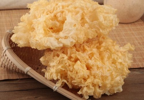 子实体纯白色,或带黄色,半透明,胶质,直径5~10厘米,由许多薄而卷曲的瓣片组成,干燥后呈淡黄色;在子实体瓣片的上下表面,均覆盖有子实体;子实层由无数的担子(深埋于子实体表层内,也称为下担子)所组成。担子卵白木耳圆形或近球形,无色,孢子近球形,透明。