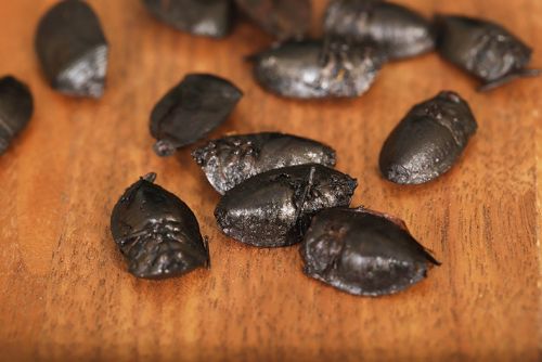 全虫六角状椭圆形而扁平,紫黑色带铜色光泽。头小,略呈三角形,复眼突出,卵圆形,单眼1对。喙较短,触角5节。前胸背板及小盾片均具不规则横皱纹。翅2对,前翅为半鞘翅,棕红色,翅末1/3为膜质。足3对,褐色,以后足最长。腹面密布细刻及皱纹,后胸膜板前缘区有2个臭孔,能由此放出臭气。