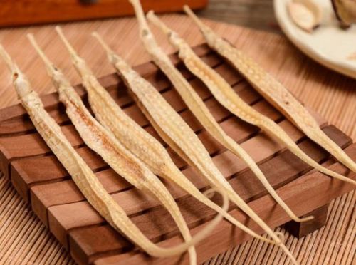 刁海龙:体狭长而侧扁,体长37~50厘米。躯干部五棱形,尾部前方六棱形,后方四棱形,渐细卷曲。腹部中央特别突出。头长,与体轴在同一水平线上或与体轴成一大钝角。颈部背方呈棱脊状,具颈棘2个,吻延长,约为眶后头长的2倍。眼大而圆,眼眶突出。鼻孔每侧2个。鳃盖突出,具明显放射状纹理。全体无鳞,外覆环状骨片,被有大小不等粗糙颗粒状棘。无尾鳍。雄性尾部前方有育儿囊。体淡黄色。其余2种形似刁海龙,拟海龙、尖海龙有尾鳍;尖海龙尾后方不卷曲。