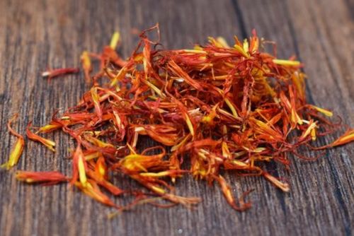 一年生草本。高40~100厘米。茎直立,上部有分枝,表面有细浅槽纹。无毛。叶互生;几无柄,稍抱茎;叶片长椭圆形或卵状披针形。头状花序顶生,直径2~3厘米,排成伞房状;总苞近球形,总苞片数轮,最外2~3轮叶状,边缘有刺齿,内面数轮卵形,边缘无刺,呈白色膜质,透明,最内轮线形鳞片状,透明膜质;花多数,着生于扁平花托上,全为管状花,橙红色,长约2厘米;花冠管部细线形,先端5裂;雄蕊5枚,花丝短,着生于花冠口部,花药线形,聚合成管状,包围雌蕊;雌蕊1枚,花柱细长,伸出花药管外,柱头2浅裂。瘦果倒卵形,有4棱,基部稍歪斜。花期5~7月,果期7~9月。