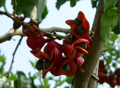 常绿乔木。小枝有棱角,密被黄褐色茸毛。叶互生,2回羽状复叶,叶柄具4棱,羽片3~8对,通常4~5对,每对羽片着生处的叶轴上有1枚腺体,最下部的羽片有小叶3~6片,最顶部的羽片有小叶10~12对或更多;小叶革质,斜菱形,最顶部的小叶最大,两面被褐柔毛,近无柄。花白色或淡黄色,数朵组成小型头状花序,多个头状花序再作顶生或腋生圆锥花序式排列;萼钟形,褐色柔毛;花冠中部以下合生,裂片匙形;雄蕊多数。荚果2回或3回旋卷。