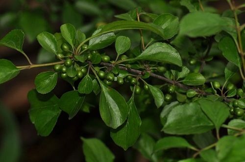 落叶小乔木或开张的大灌木,高可达10米,分枝多。树皮灰褐色,常呈环状剥裂。小枝粗壮近对生,具较大的锥形顶芽,稀不具芽而成锥形刺。叶对生于长枝上,或丛生于短枝上;卵状椭圆形、椭圆形或倒宽披针形,先端渐尖或急尖,基部圆形,边缘具细圆齿,齿端常有腺体,无毛。侧脉通常4~5对。花2~5束生于叶腋,黄绿色,雌雄异株;萼4裂,萼片狭卵形,锐头;花冠漏斗状钟形,4裂;雄花雄蕊4枚,雌花子房球形,2~3室,花柱2~3裂。核果近球形,成熟后紫黑色。花期5~6月,果期8~9月。