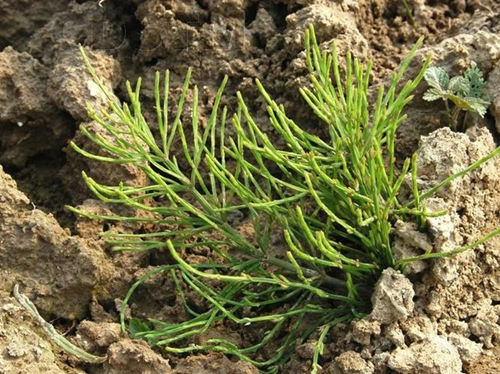 多年生草本,地上茎直立,二型。营养茎在孢子茎枯萎后长出,高15~60厘米,有棱脊6~15条,分枝轮生,叶退化,下部联合成鞘,鞘齿披针形,黑色,边缘灰白色,膜质。孢子茎早春由根茎发出,褐色,肉质,不分枝,鞘长而大。孢子囊穗顶生,孢子叶六角形,盾状着生,下生孢子囊6~8个,孢子成熟时孢子茎即枯萎。