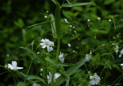 多年生草本,高70~120厘米。全株无毛,粉绿色;叶长圆状披针形,有纵脉3条;聚伞花序顶生,花萼钟状,裂片5。花瓣5,白色,先端2裂;雄蕊10;子房上位,花柱3,丝状。蒴果近球形,熟时先端6裂。种子卵形,微扁。花期6~7月,果期8~9月。