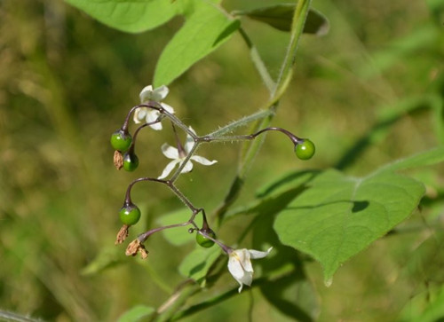 多年生蔓性半灌木。茎长达5米,基部木质化,上部草质,具细毛。叶互生,上部叶多作戟状3裂或羽状多裂;下部叶长方形或卵状长方形,基部心脏形,先端尖,全缘,上面鲜绿色,下面较淡,两面均有细毛散生,沿叶脉较密;叶柄被细毛。聚伞花序生于枝顶或侧生与叶对生;枝梗、花柄及花均密被长柔毛,花柄细长;花萼漏斗状,萼片5,自基部向下反折,卵形或长方状披针形,顶端尖;雄蕊5枚,着生于花冠筒口,花丝短而扁,基部合生;雌蕊1,子房卵形,花柱细长,柱头半球形。浆果卵形或球形,初绿色,熟时红色至黑色。种子白色,扁圆。花期9~10月,果期11月。