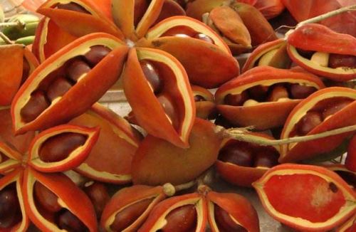 乔木。树皮黑褐色,小枝幼时略被星状毛。叶互生,叶片薄革质,长圆形或椭圆形,长8~25厘米,宽5~15厘米,先端急尖或钝,基部圆或钝。圆锥花序顶生或腋生,披散,有短柔毛;花单性,无花冠,花萼淡红色,钟状,外面被短毛柔毛,5列,裂片条状披针形,先端渐尖且向内曲,在先端互相黏合,与钟状萼筒等长,雄花较多,雌雄蕊柄弯曲,雌花较少,略大,子房圆球形,有5条沟纹,密被毛,柱头5浅裂。蓇葖果鲜红色,厚革质,长圆状卵形,先端有喙,种子1~4颗。种子椭圆形或长圆形,黑褐色。
